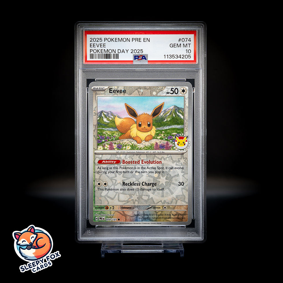 Eevee Prismatic Evolutions 074/131 Pokemon Day 2025 Stamped Promo (PSA 10)